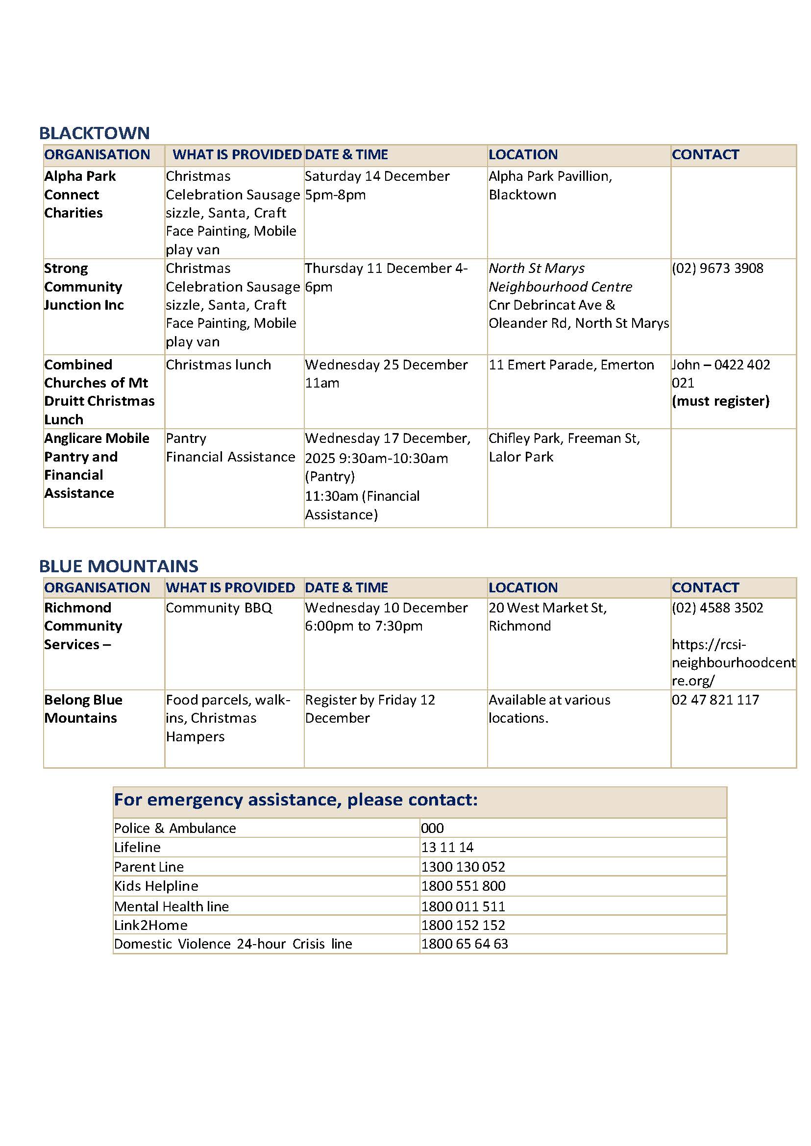 Please view our Emergency Services Directory 2025 if you need emergency support during this period. In the event of a life-threatening emergency, call Triple Zero (000) immediately.