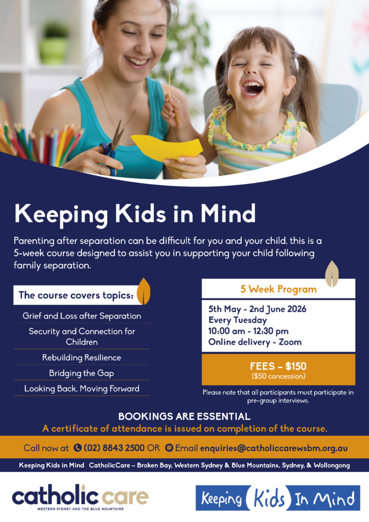Keeping Kids in Mind is a dynamic 5-week course aimed at assisting separated/divorced parents to support their children through changes and challenges. It covers issues such as loss and grief, attachment, resilience, and conflict resolution.